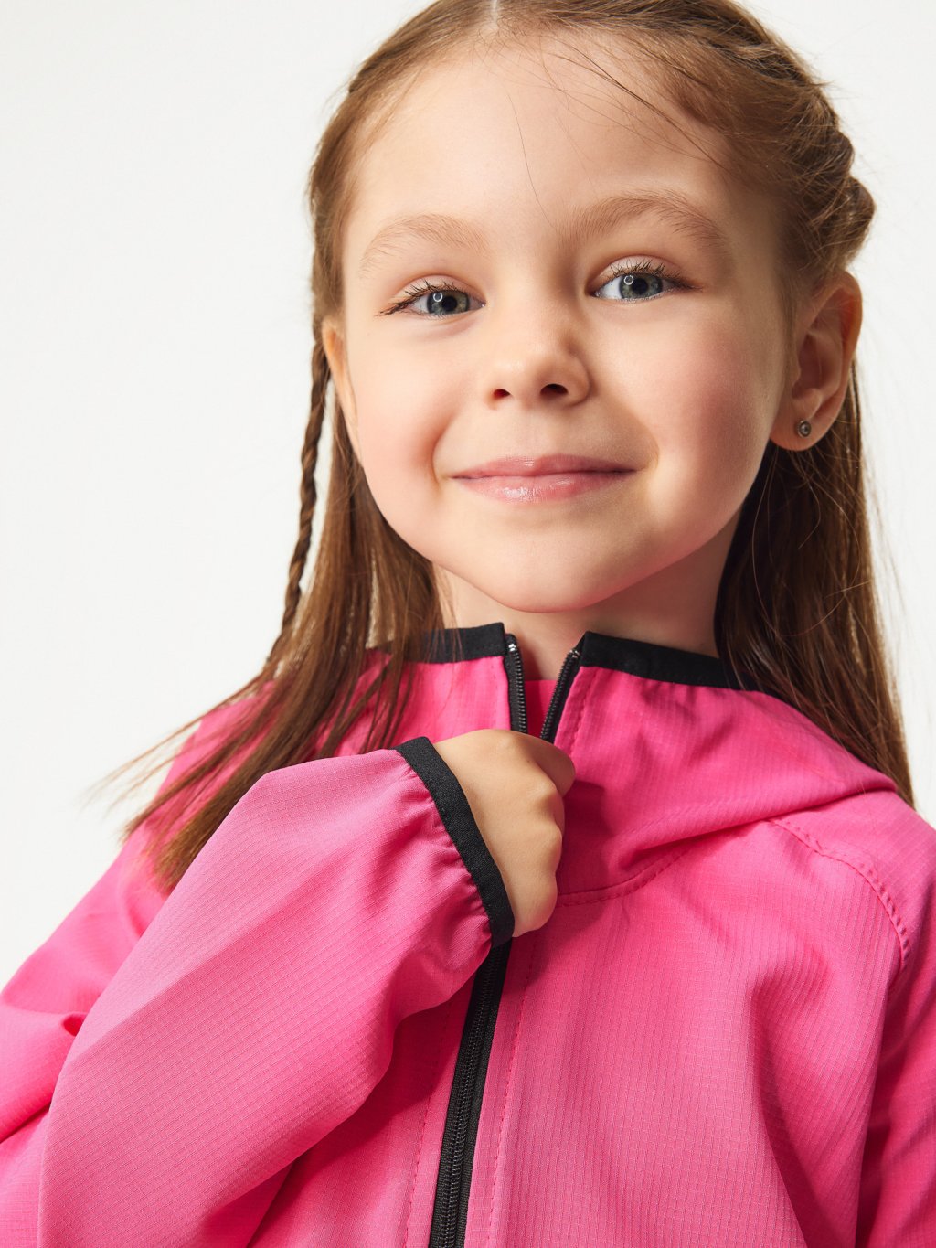 The windbreaker is made of a lightweight, breathable material that is not only packable, but thanks to its structure, perfectly protects against wind and light rain.