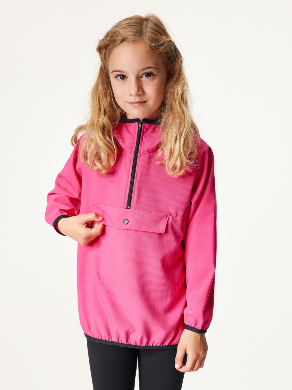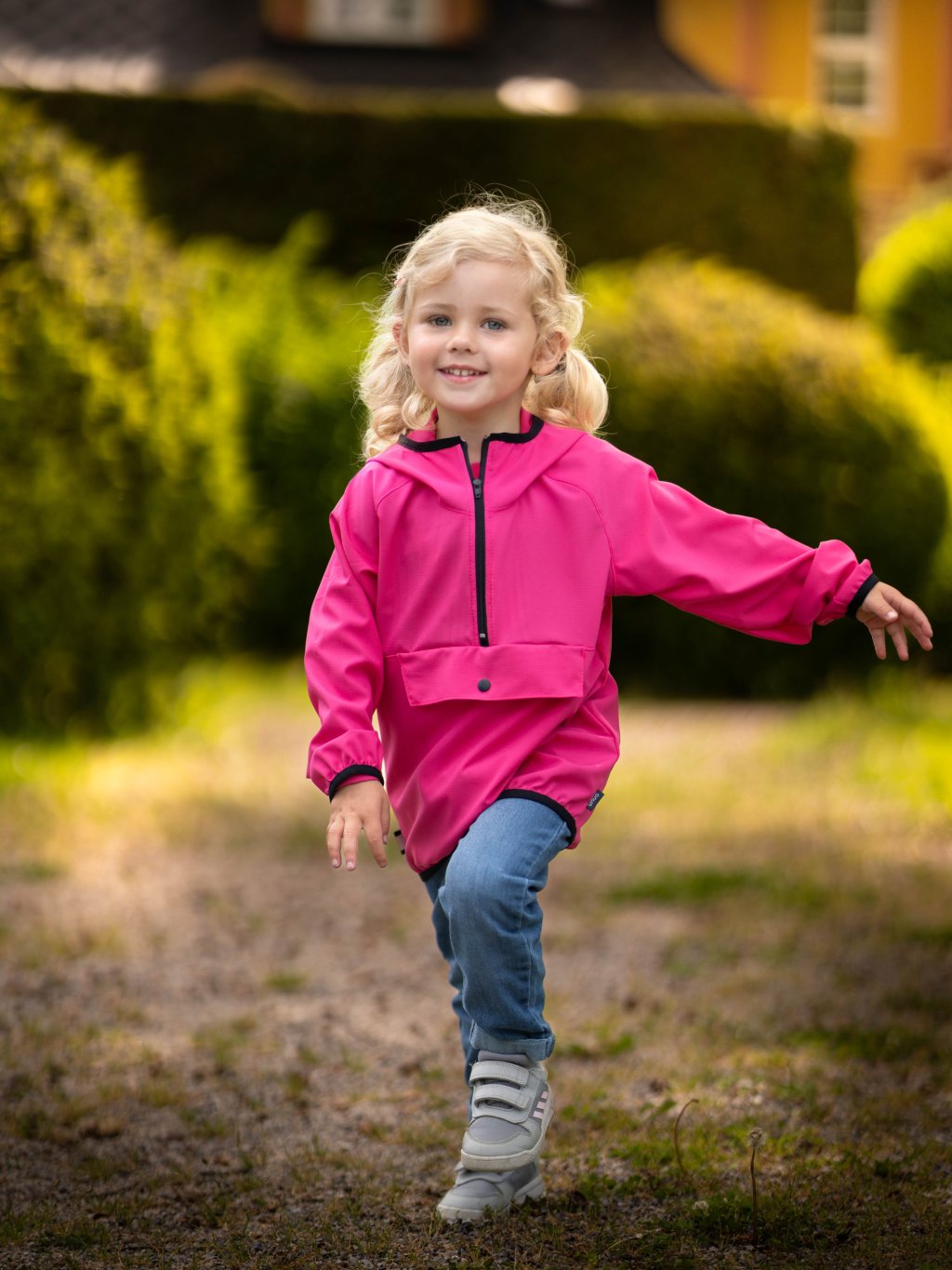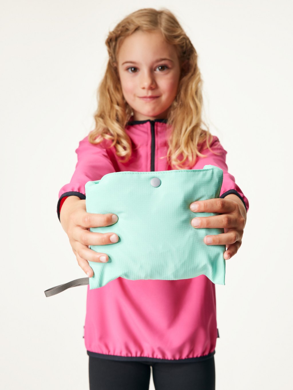 The ideal jacket for any summer adventure on trips or outdoor games. It fits over the head and thanks to the handy pocket, it's easy to fold and pack, meaning it fits easily into a small backpack. Whether your kids are heading on a family outing, playing in the garden or exploring the woods with friends, this windbreaker is the perfect companion. The fit is very versatile and is designed to be suitable for hiking, cycling or just a stroll around town. The functional, lightweight and durable material will protect your child from wind and light rain.The windbreaker is designed and manufactured in the Czech Republic.