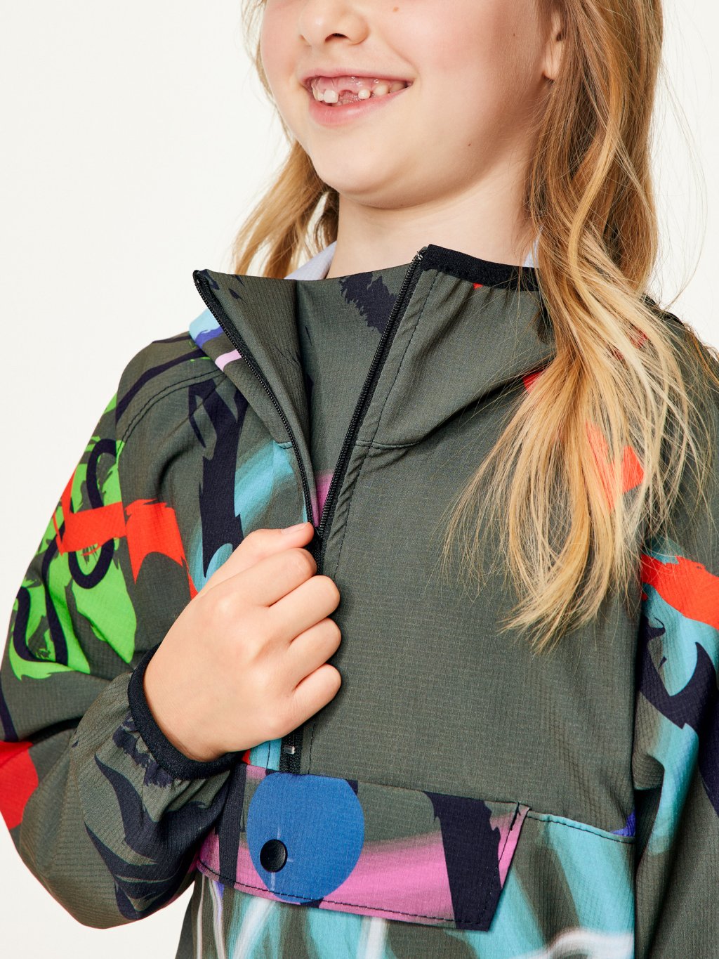 The ideal jacket for any summer adventure on trips or outdoor games. It fits over the head and thanks to the handy pocket, it's easy to fold and pack, meaning it fits easily into a small backpack. Whether your kids are heading on a family outing, playing in the garden or exploring the woods with friends, this windbreaker is the perfect companion. The fit is very versatile and is designed to be suitable for hiking, cycling or just a stroll around town. The functional, lightweight and durable material will protect your child from wind and light rain.The windbreaker is designed and manufactured in the Czech Republic.