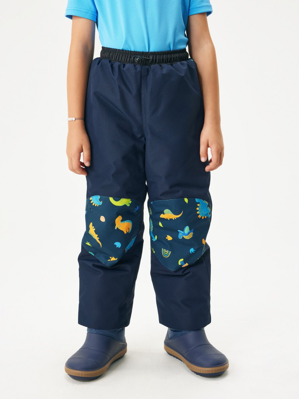 Children's winter growing trousers Polar, Dark Blue-black, Dinosaurs