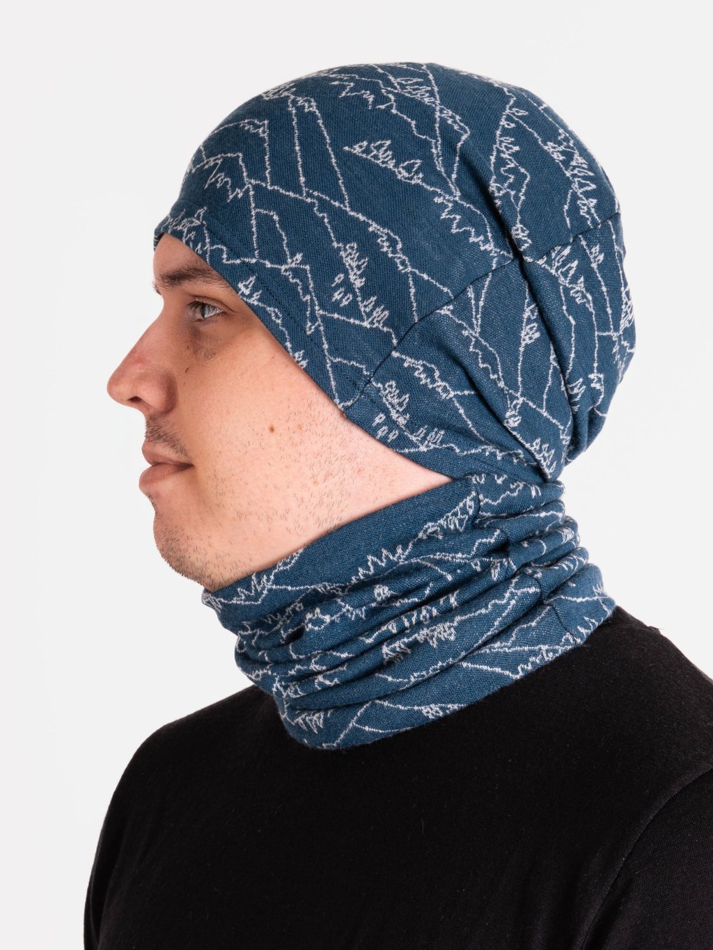 Men's merino beanie Basic, Cobalt, Mountains Boy
