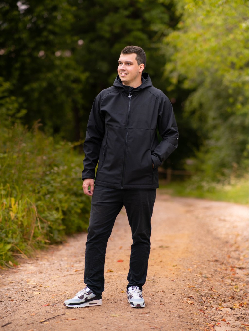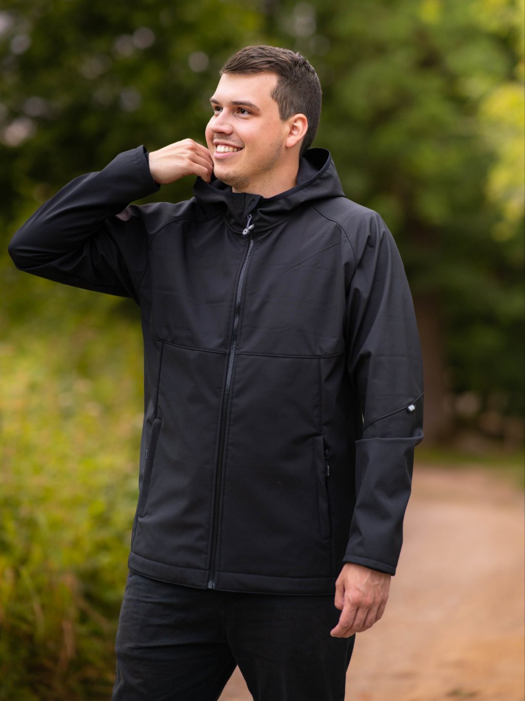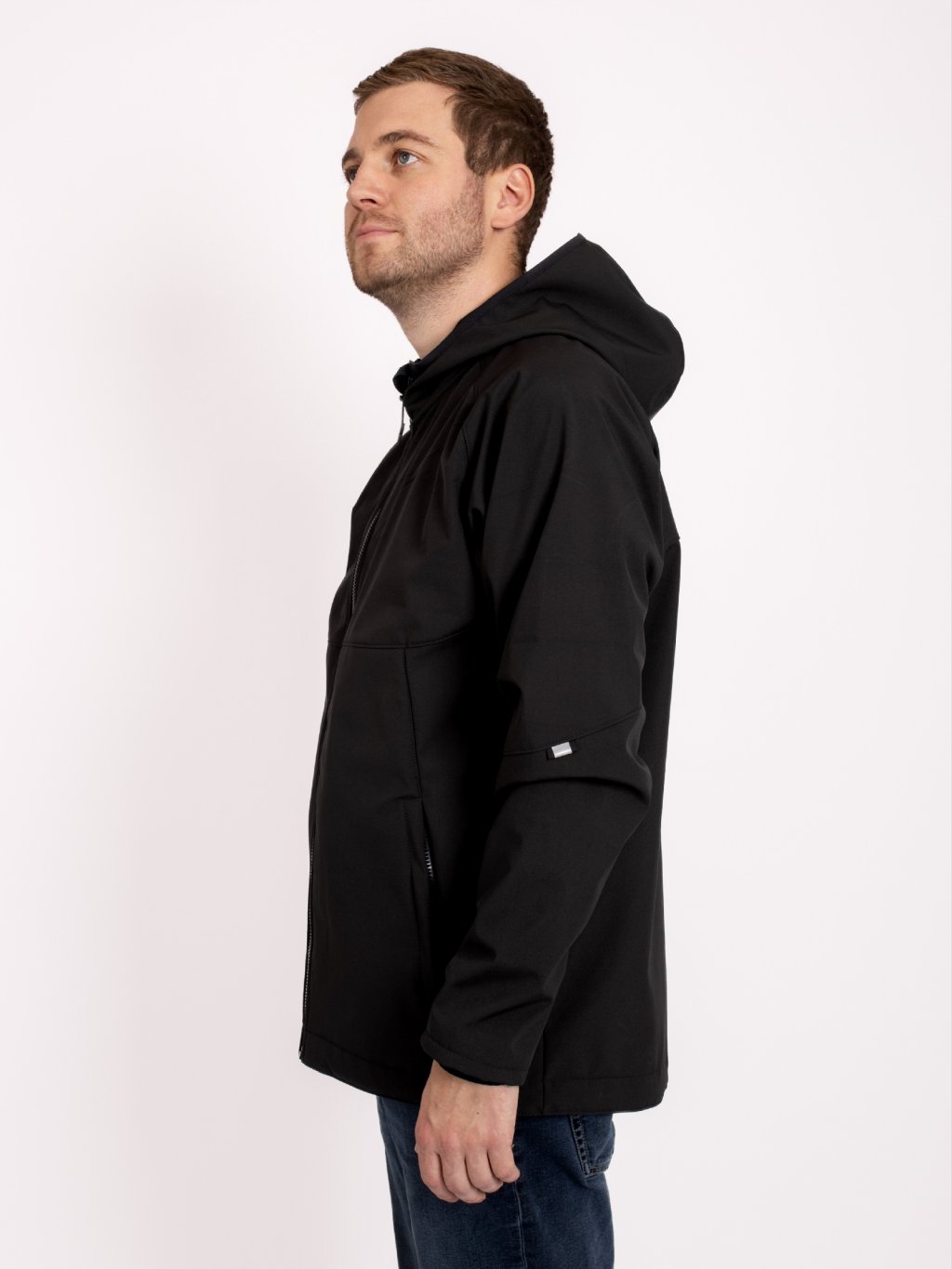 We can promise you that once you put on this functional piece, you won't want to take it off. The braids on the jacket are crafted from functional material. With two convenient side zip pockets, you can keep your essentials close at hand. The hood provides optimal comfort during wear. Other notable features include a protective chin guard, a secure zip closure, and reflective elements. Whether you're hiking, cycling, or simply strolling through the city, the Arno jacket ensures your comfort every step of the way. The jacket is made of lightweight and breathable softshell fabric with a fleece lining, providing comfortable wear and protection against wind and light rain. The outer layer repels raindrops, while the inner fleece ensures warmth, making it an excellent choice for cold and harsh weather conditions.