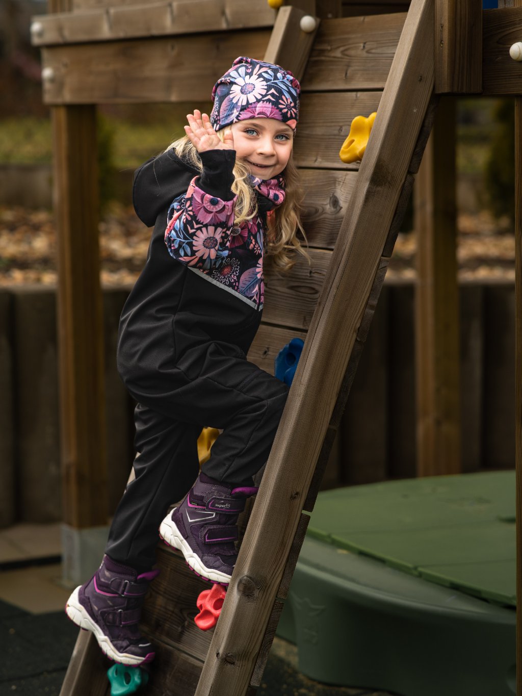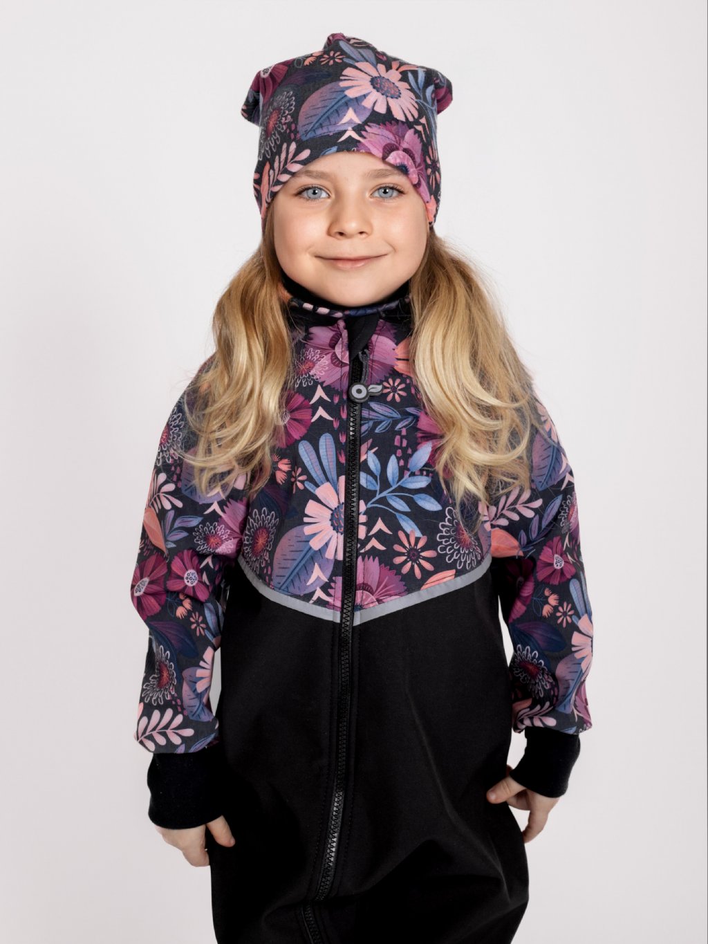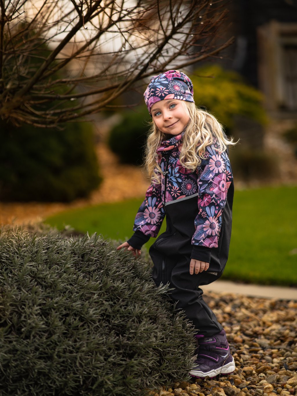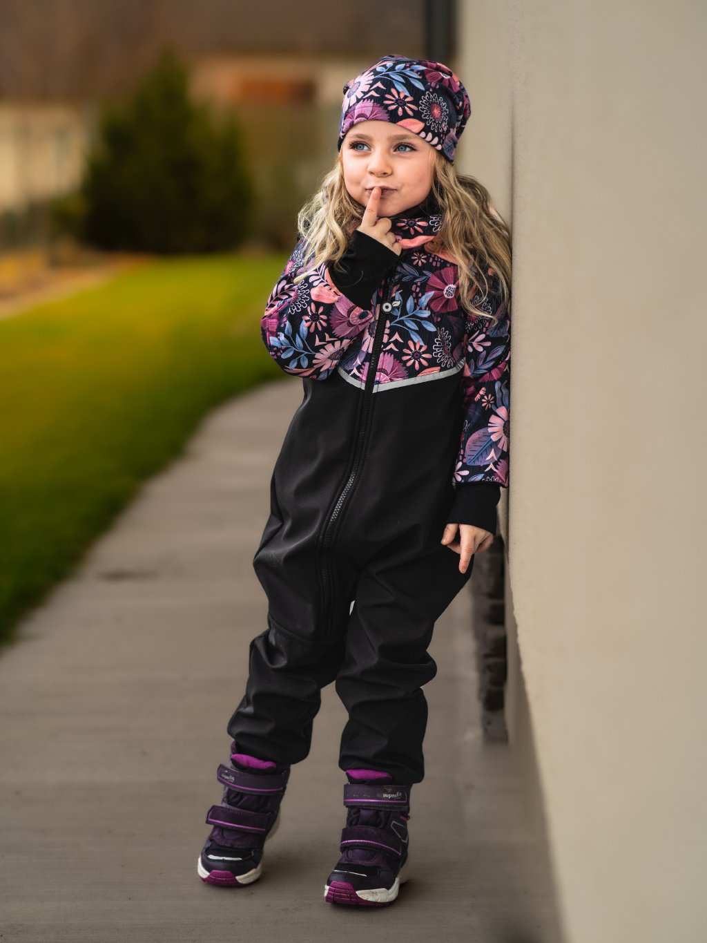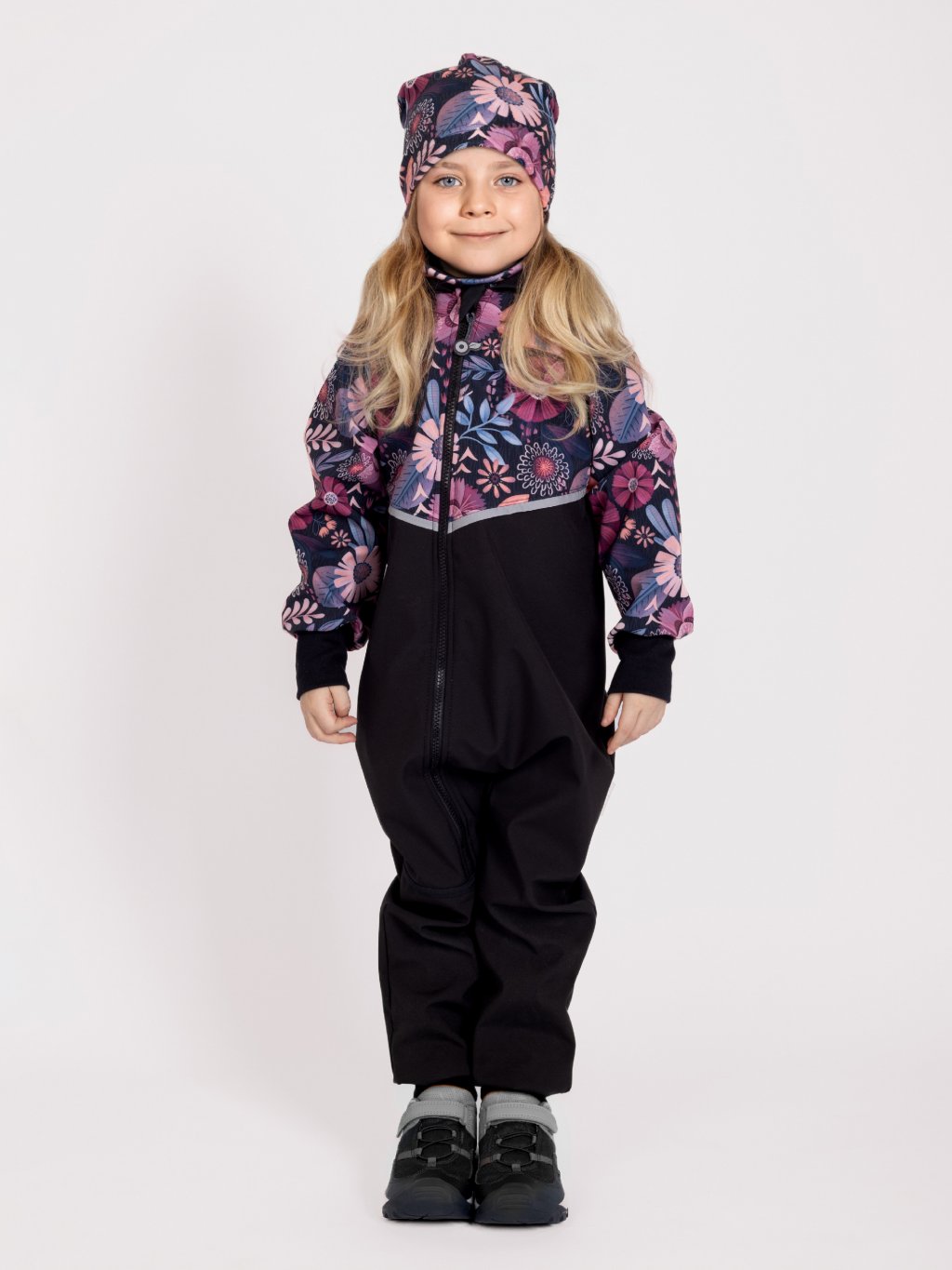 Toddler's softshell overall with fleece Mini, Black, Magic Flowers