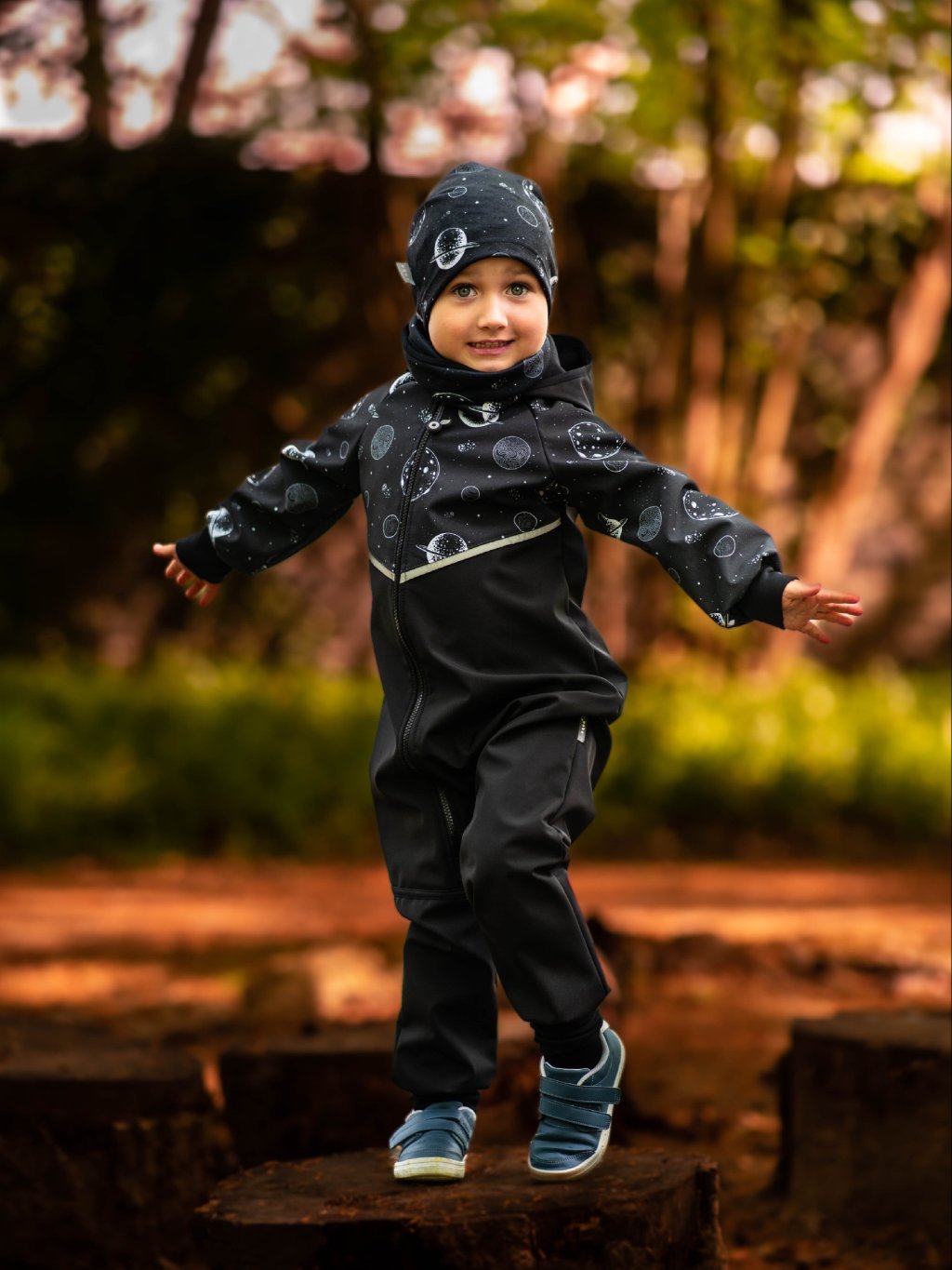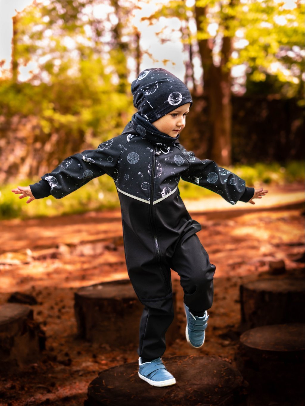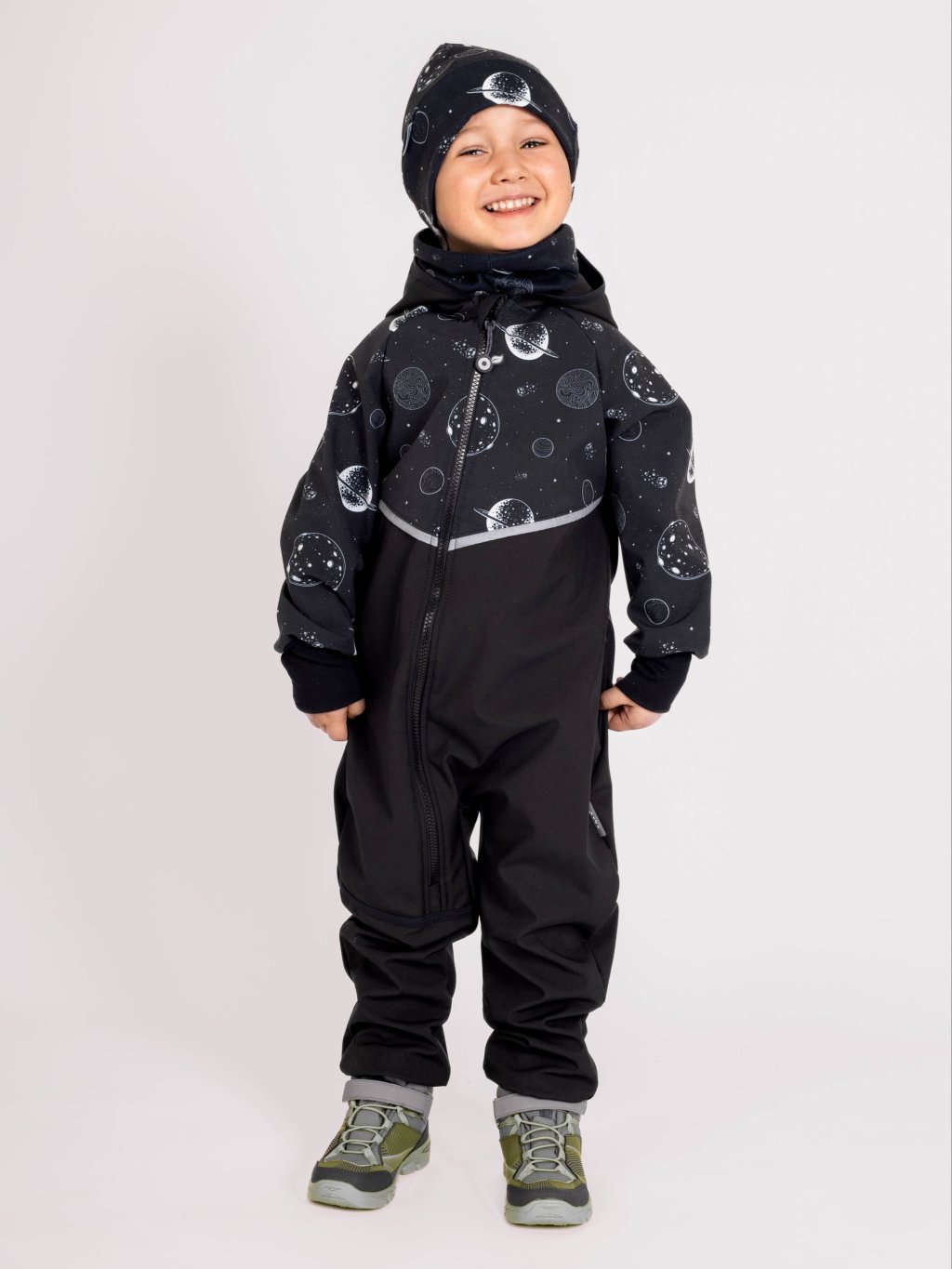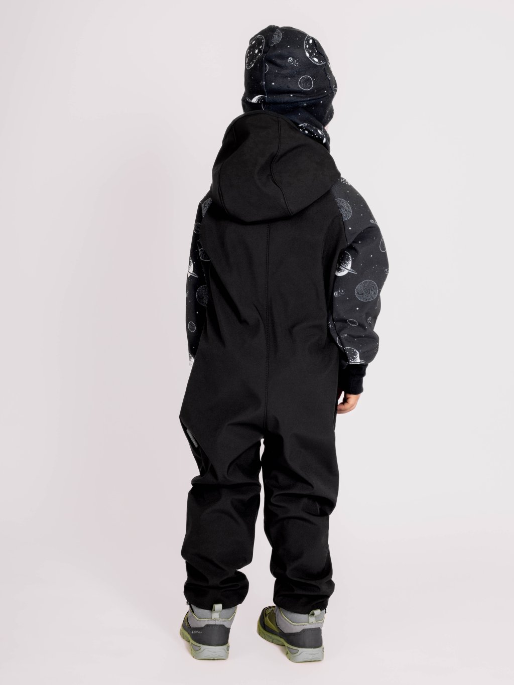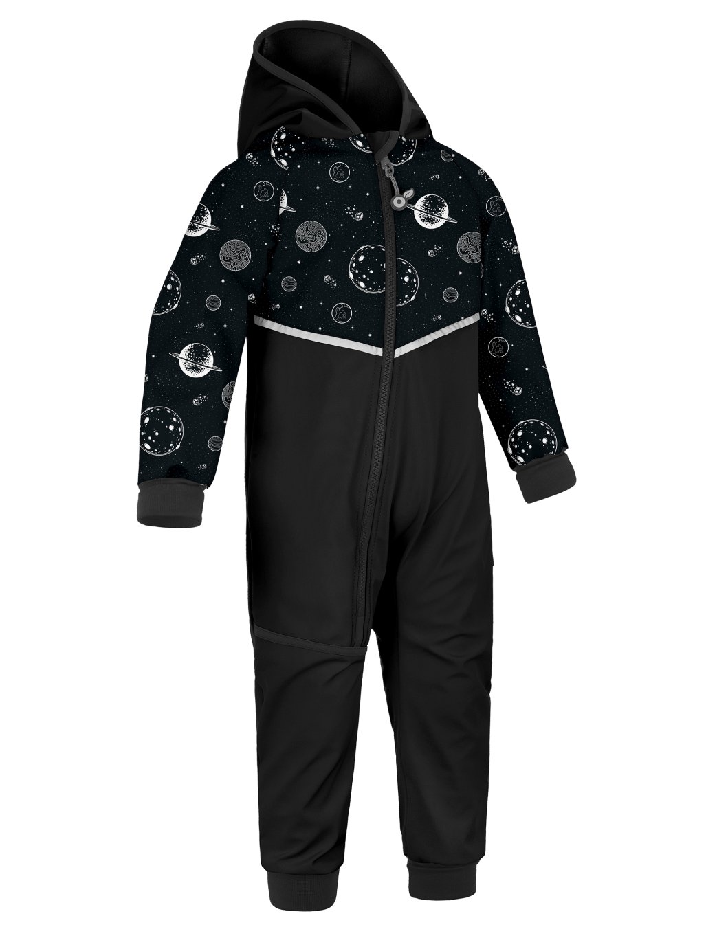 Toddler's softshell overall with fleece Mini, Black, Planets