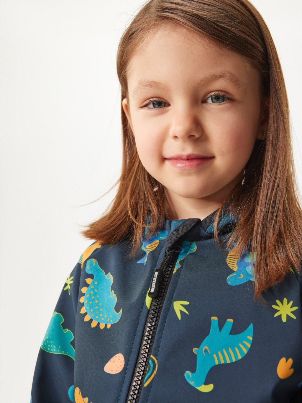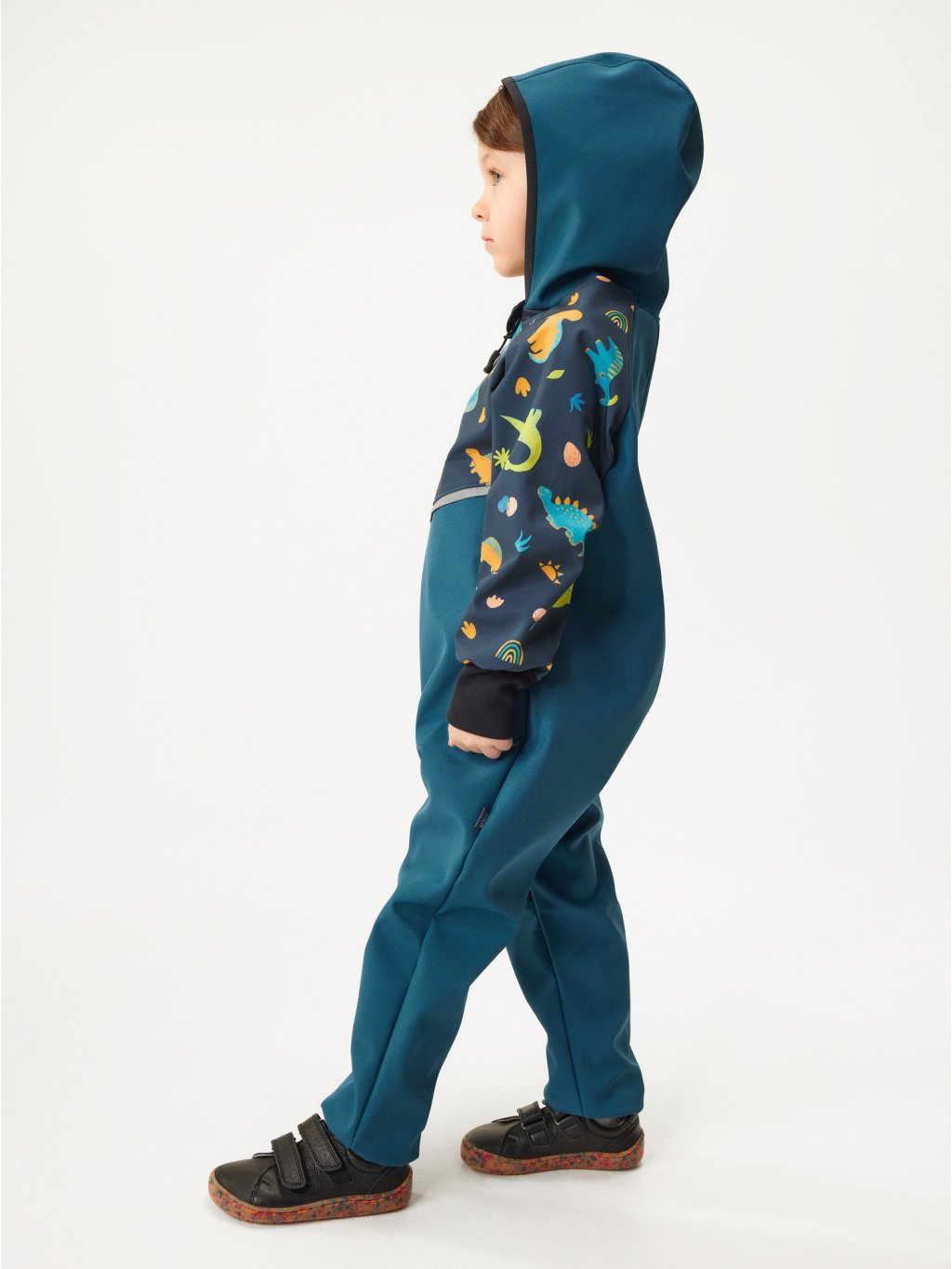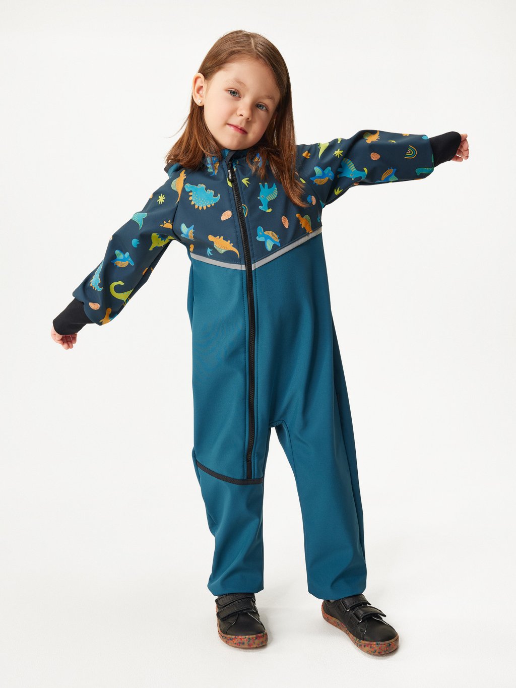 Toddler's softshell overall with fleece Mini, Cobalt, Dinosaurs