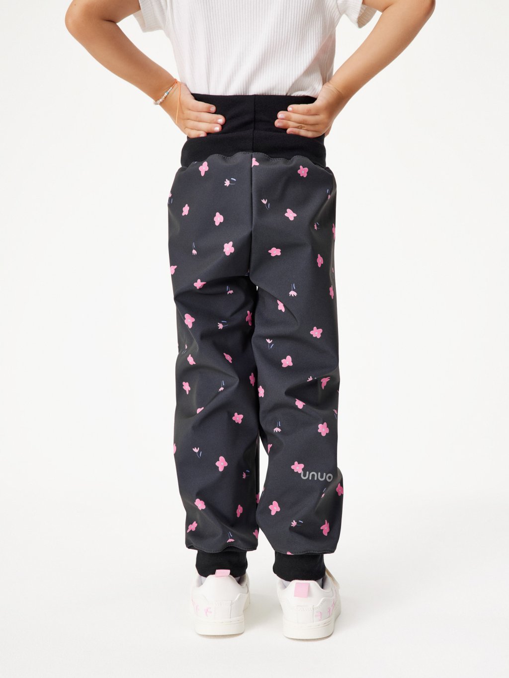 Toddler's softshell trousers with fleece Basic, Black, Flowers