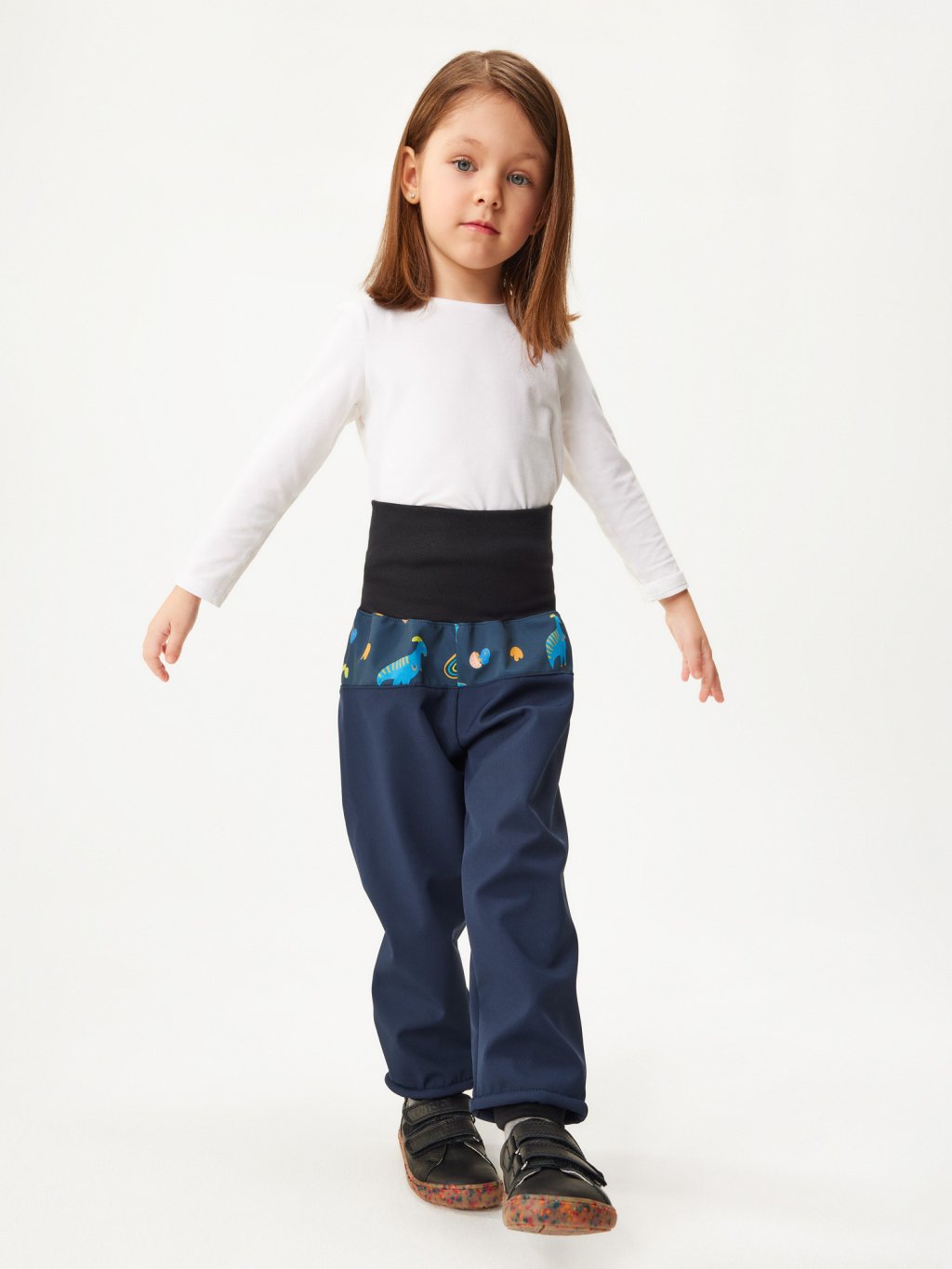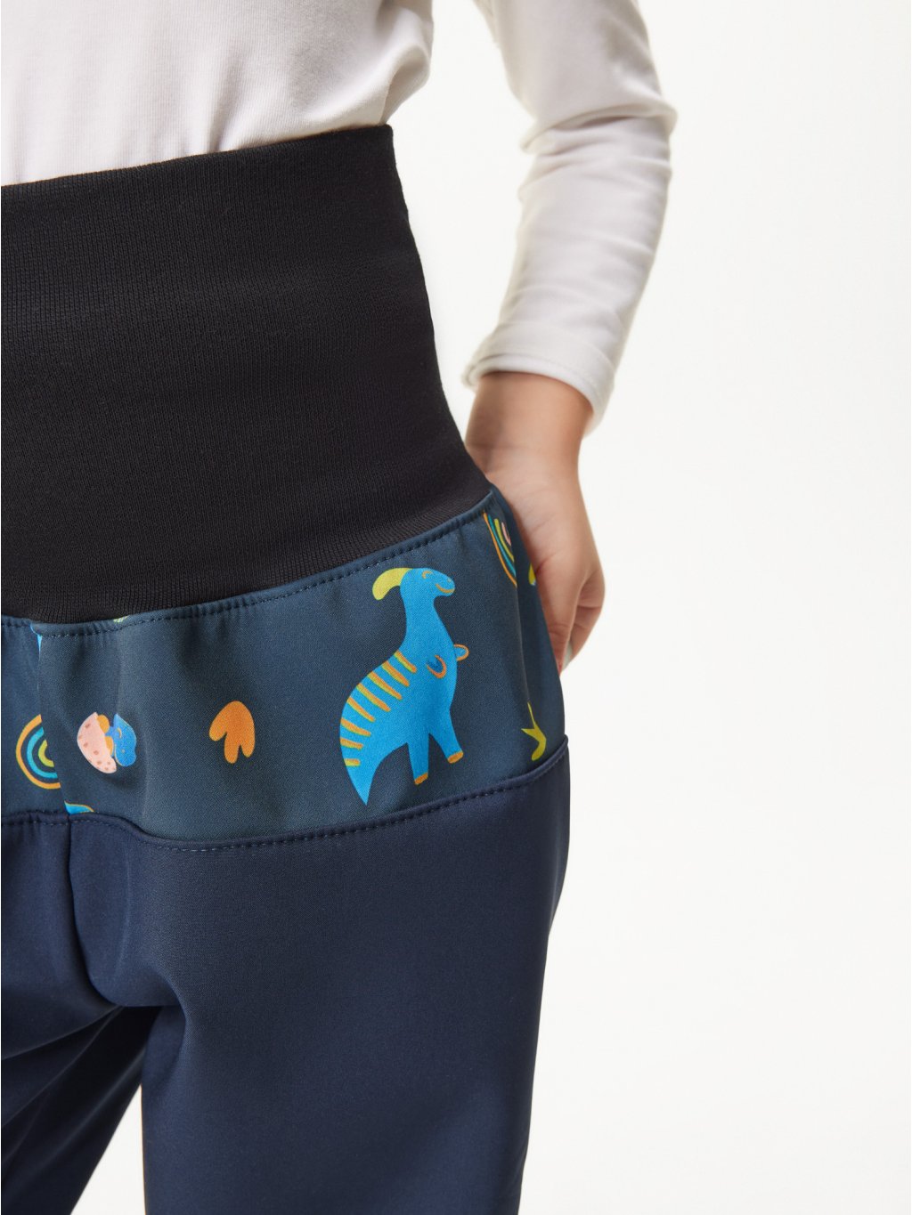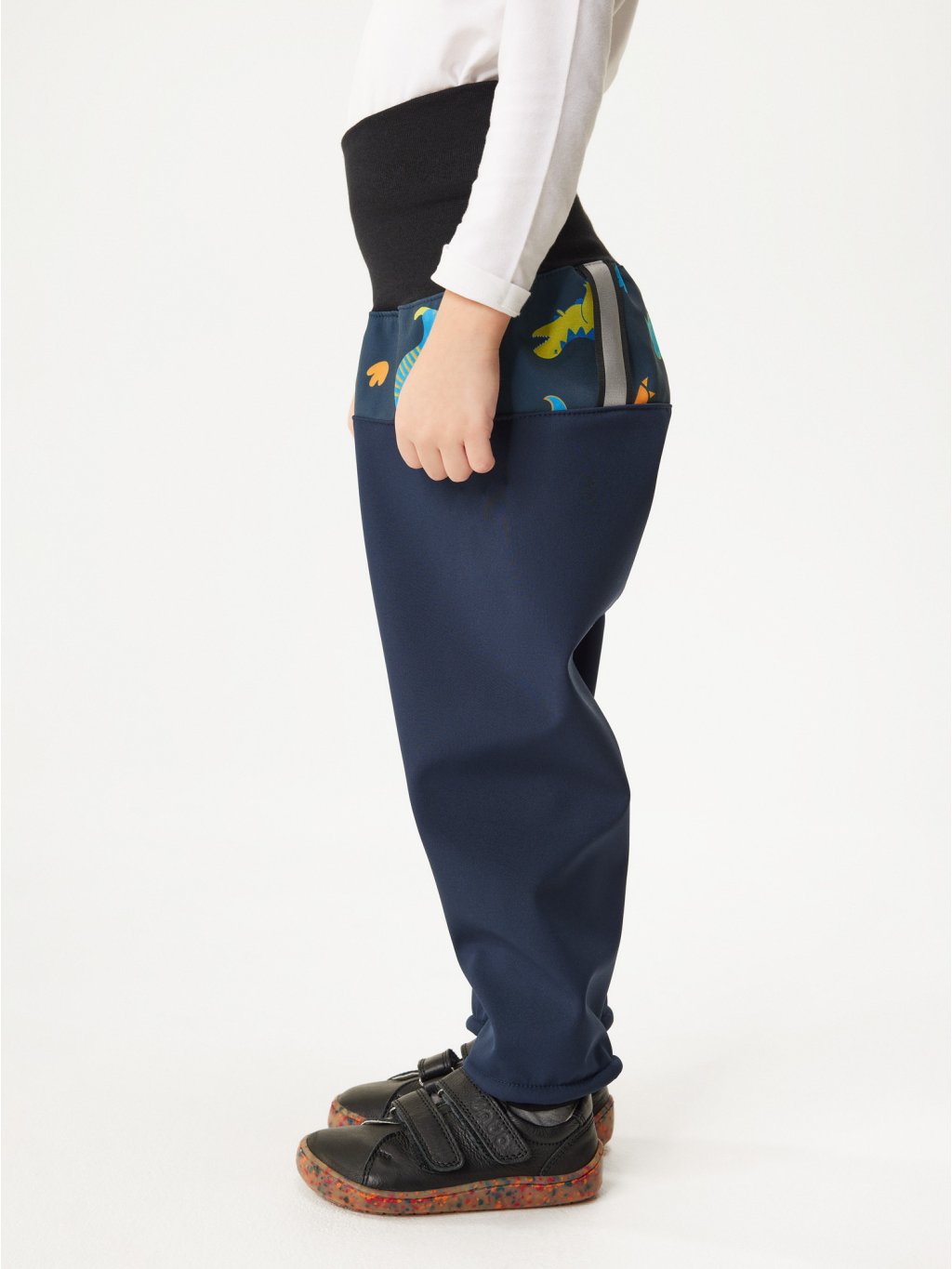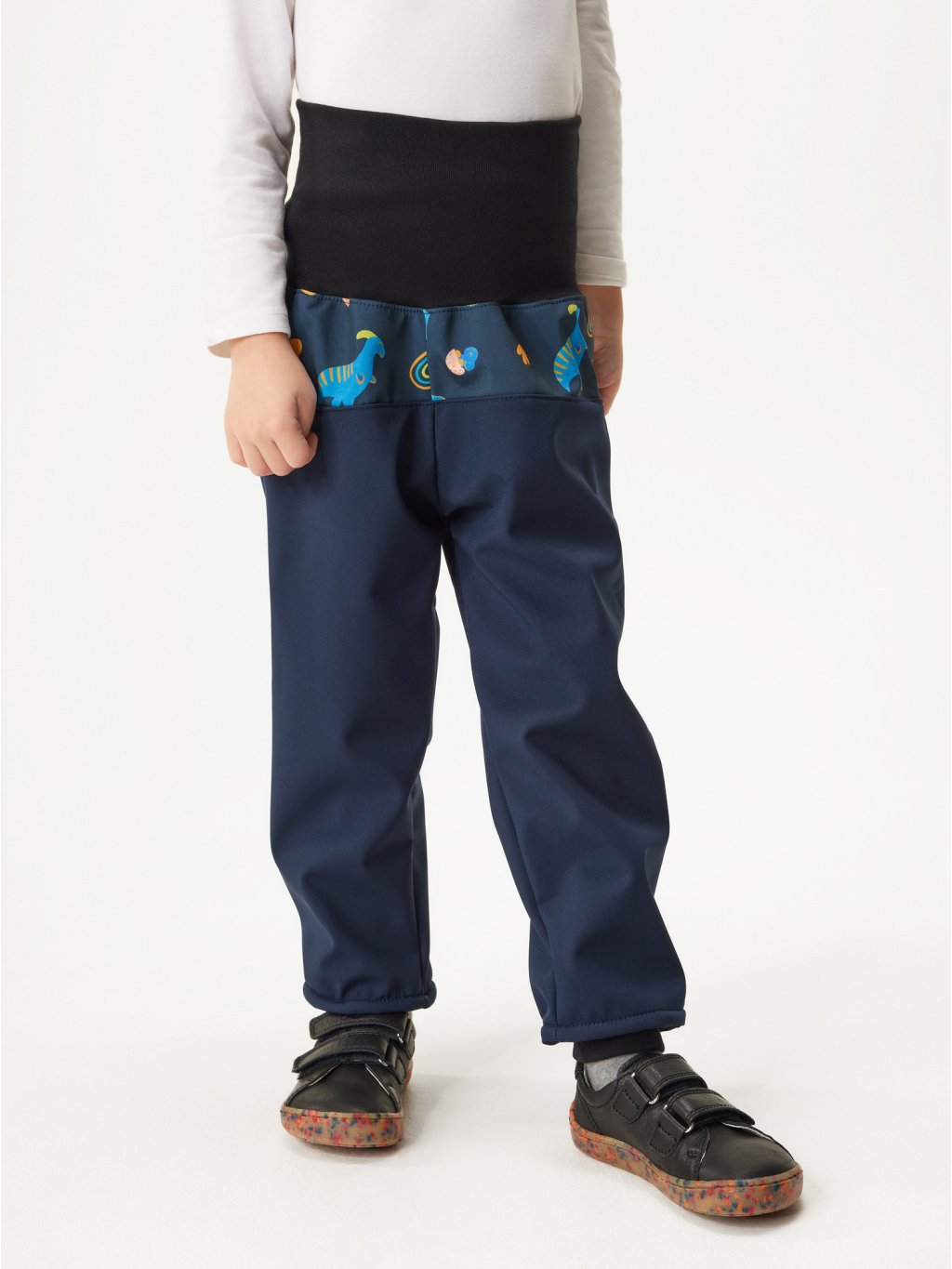 Toddler's softshell trousers with fleece Basic, Dark Blue-black, Dinosaurs