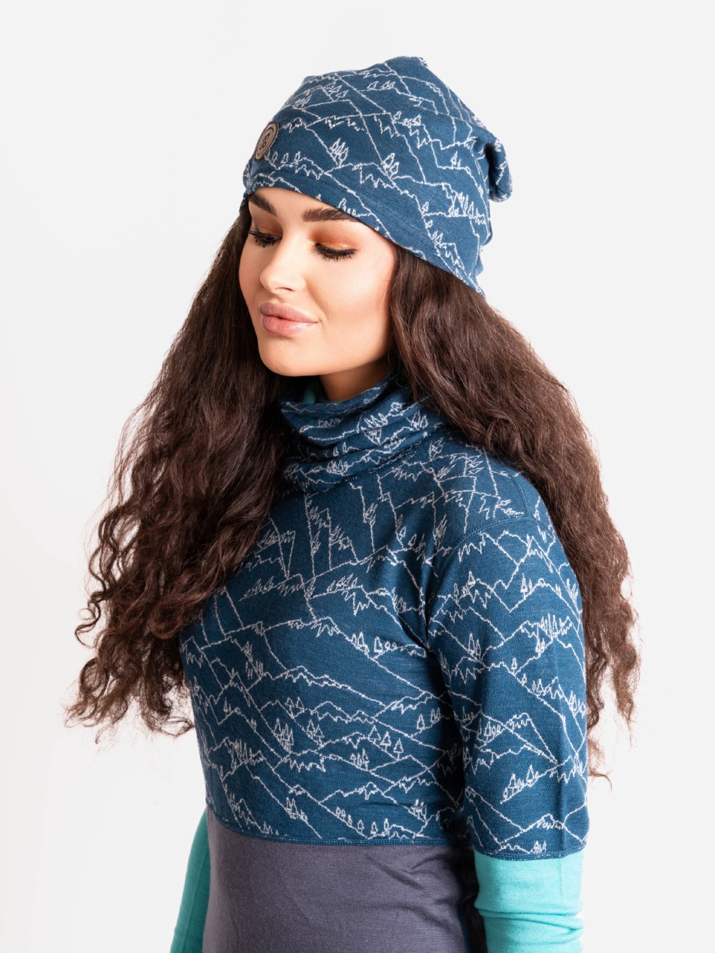 Women's merino beanie Basic, Cobalt, Mountains Boy