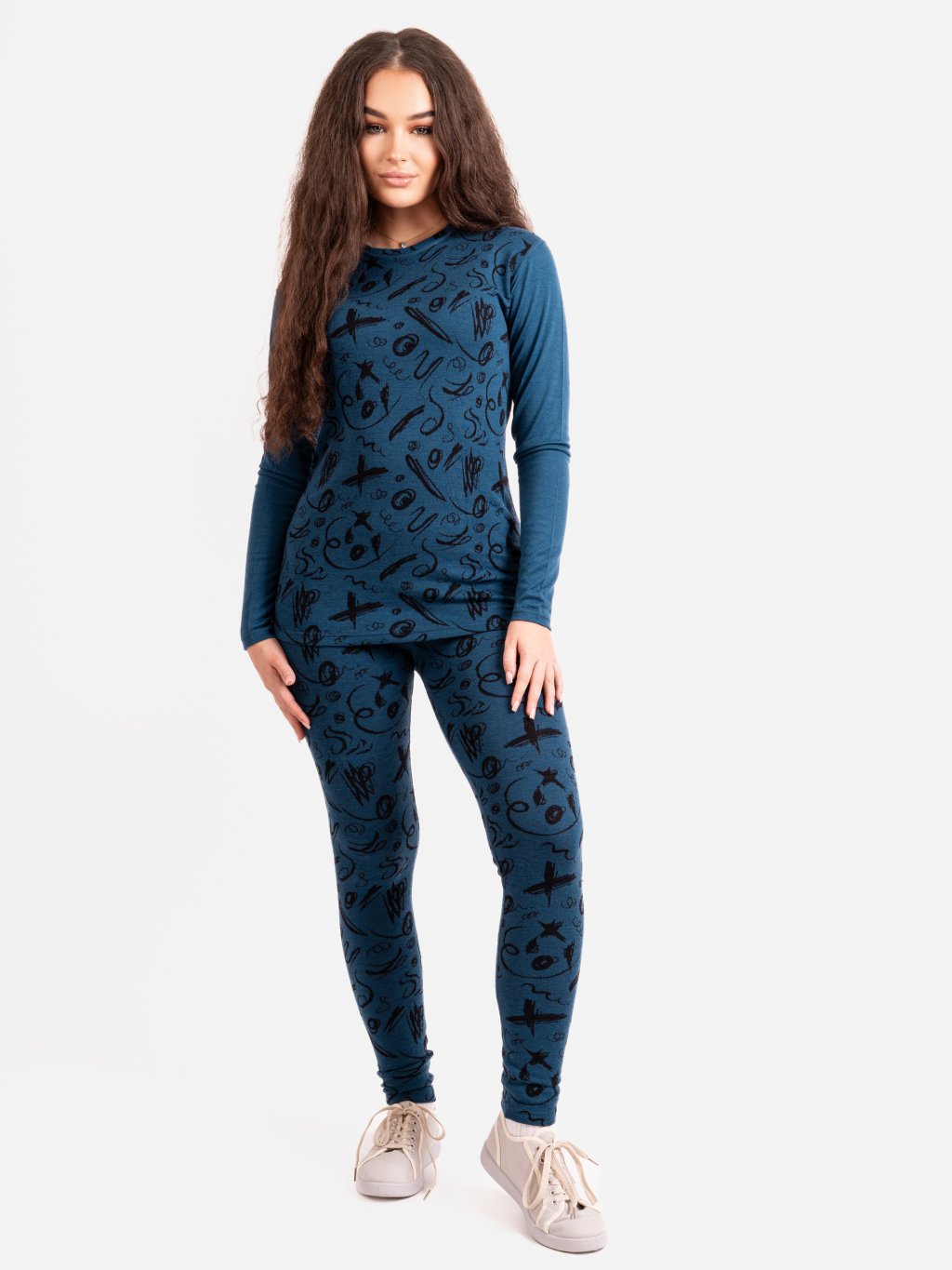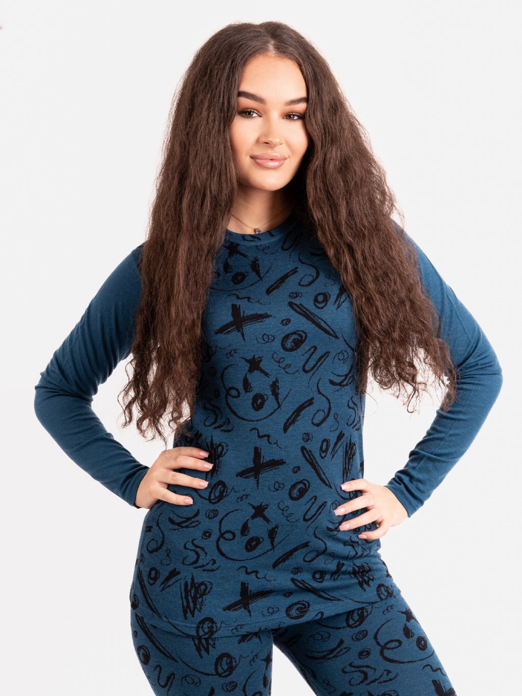 Women's merino long sleeve shirt Nature, Petrol blue, Drawing