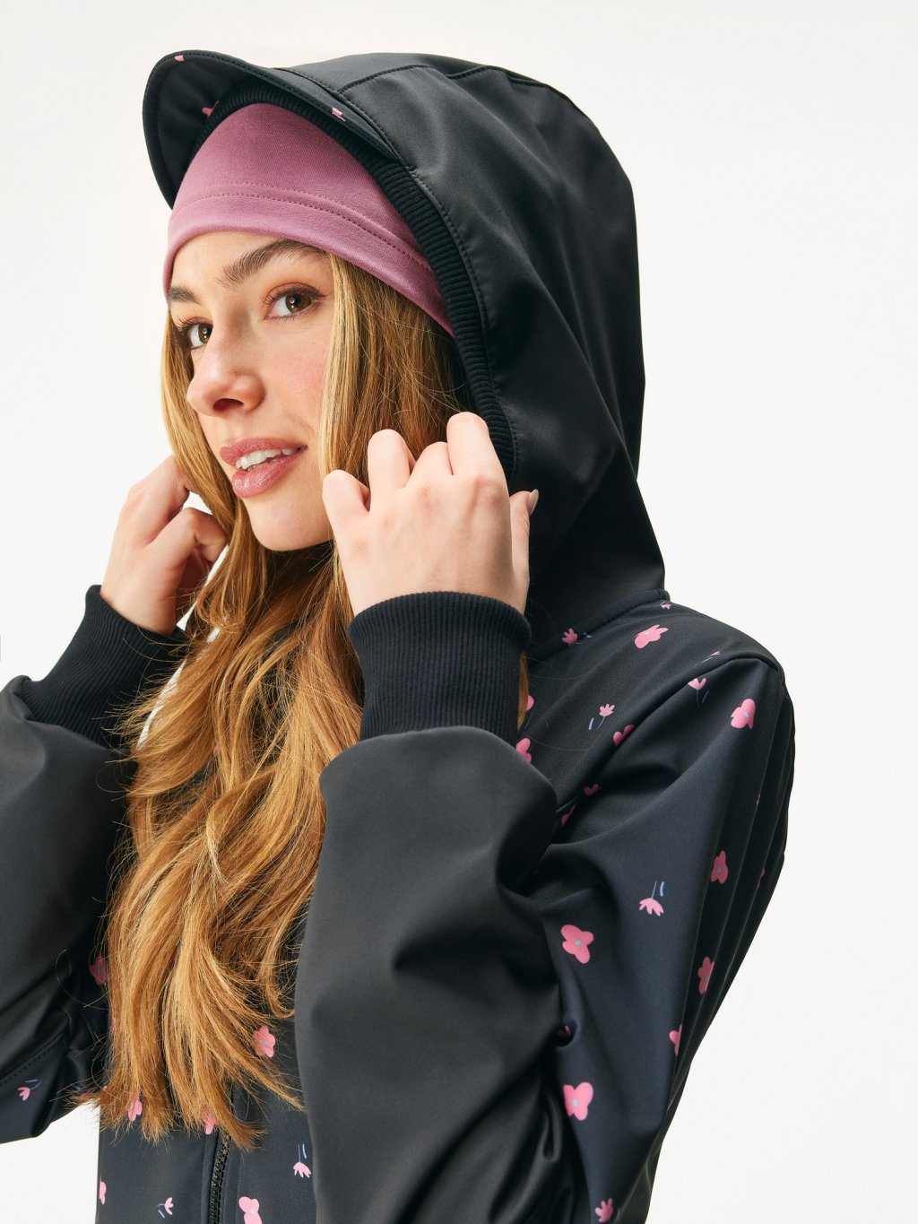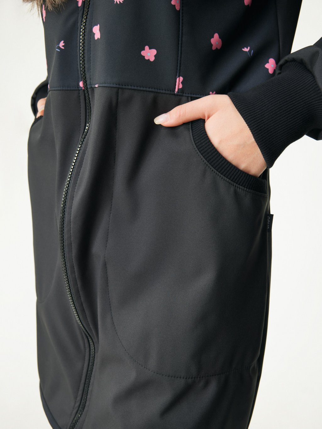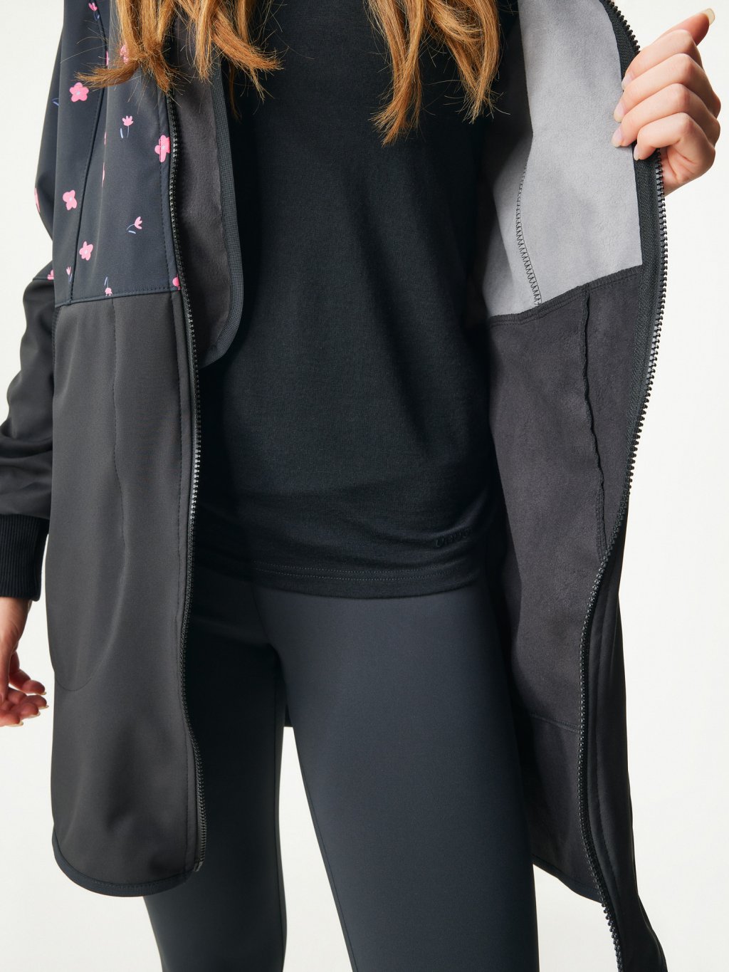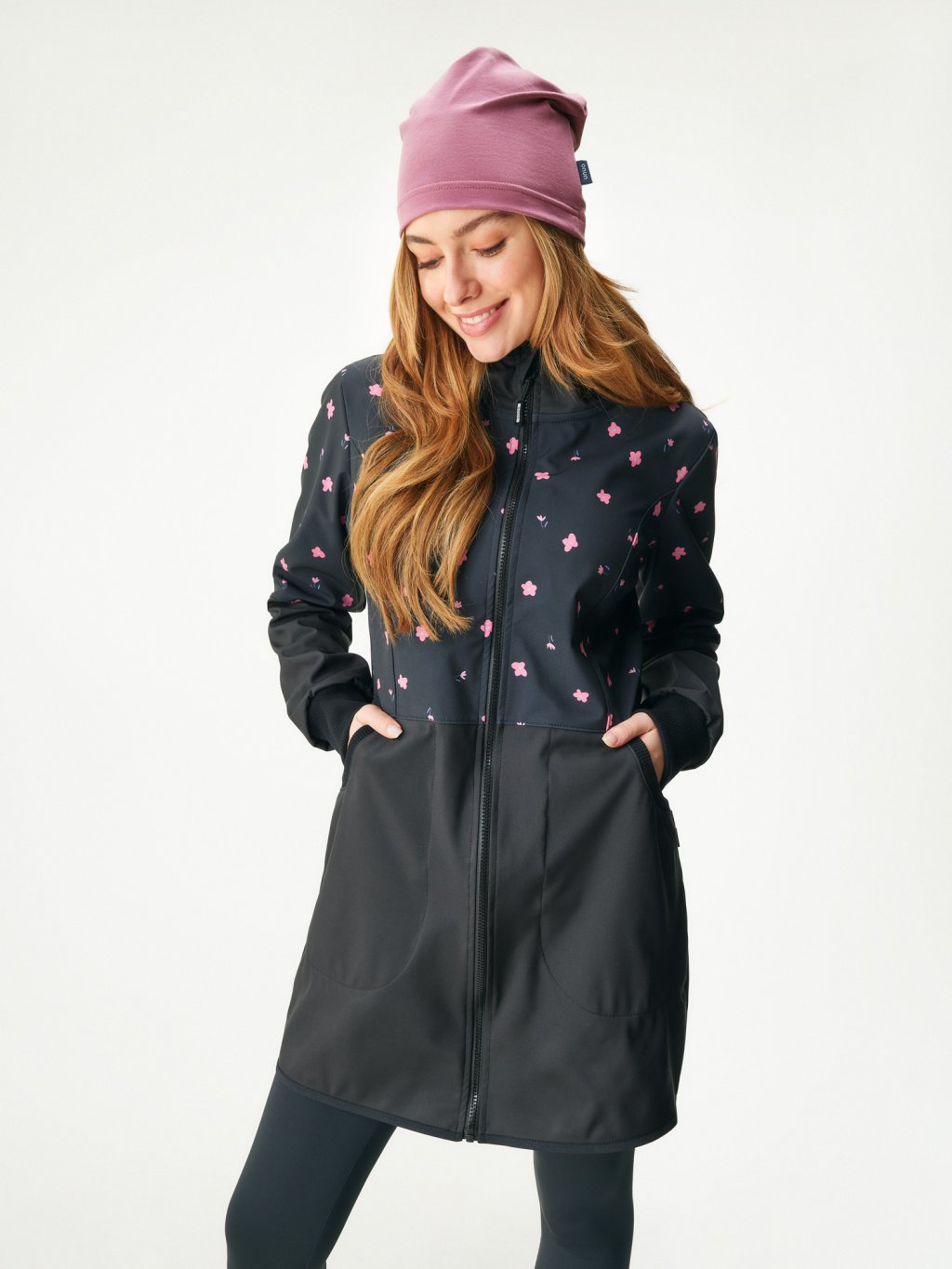 Women's softshell coat with fleece Street, Black, Flowers