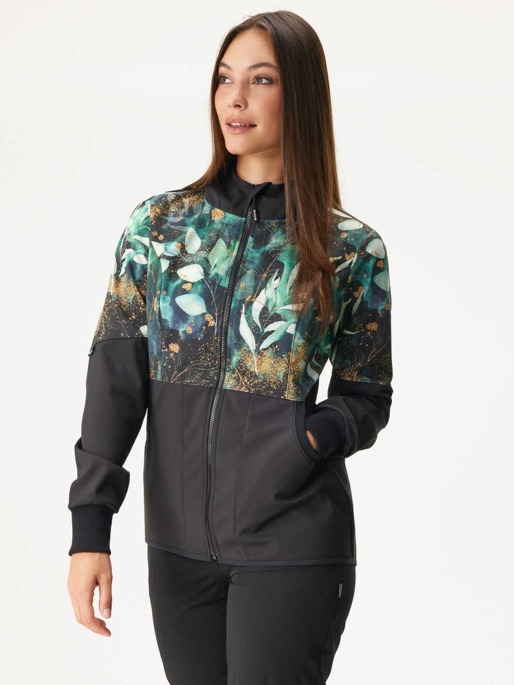 Women's softshell jacket with fleece Street, Black, Leaves and Twigs