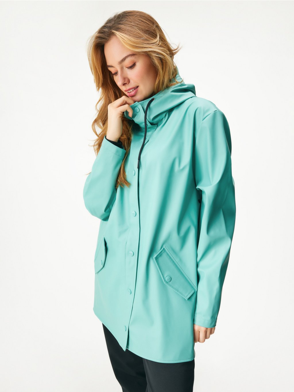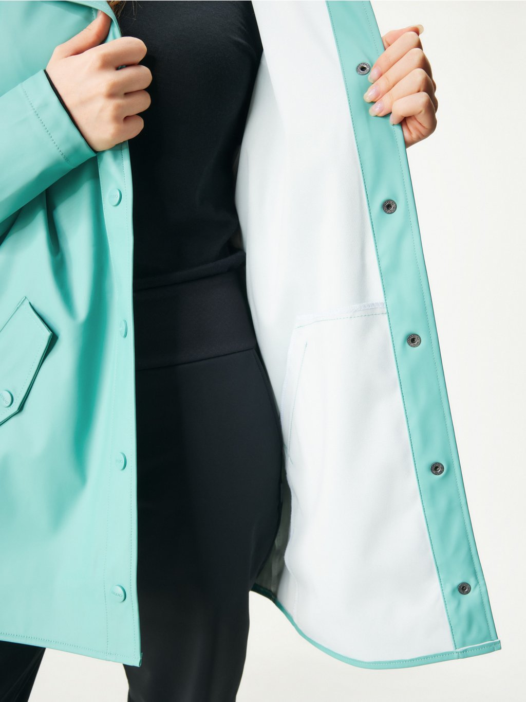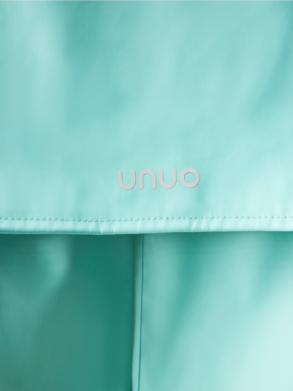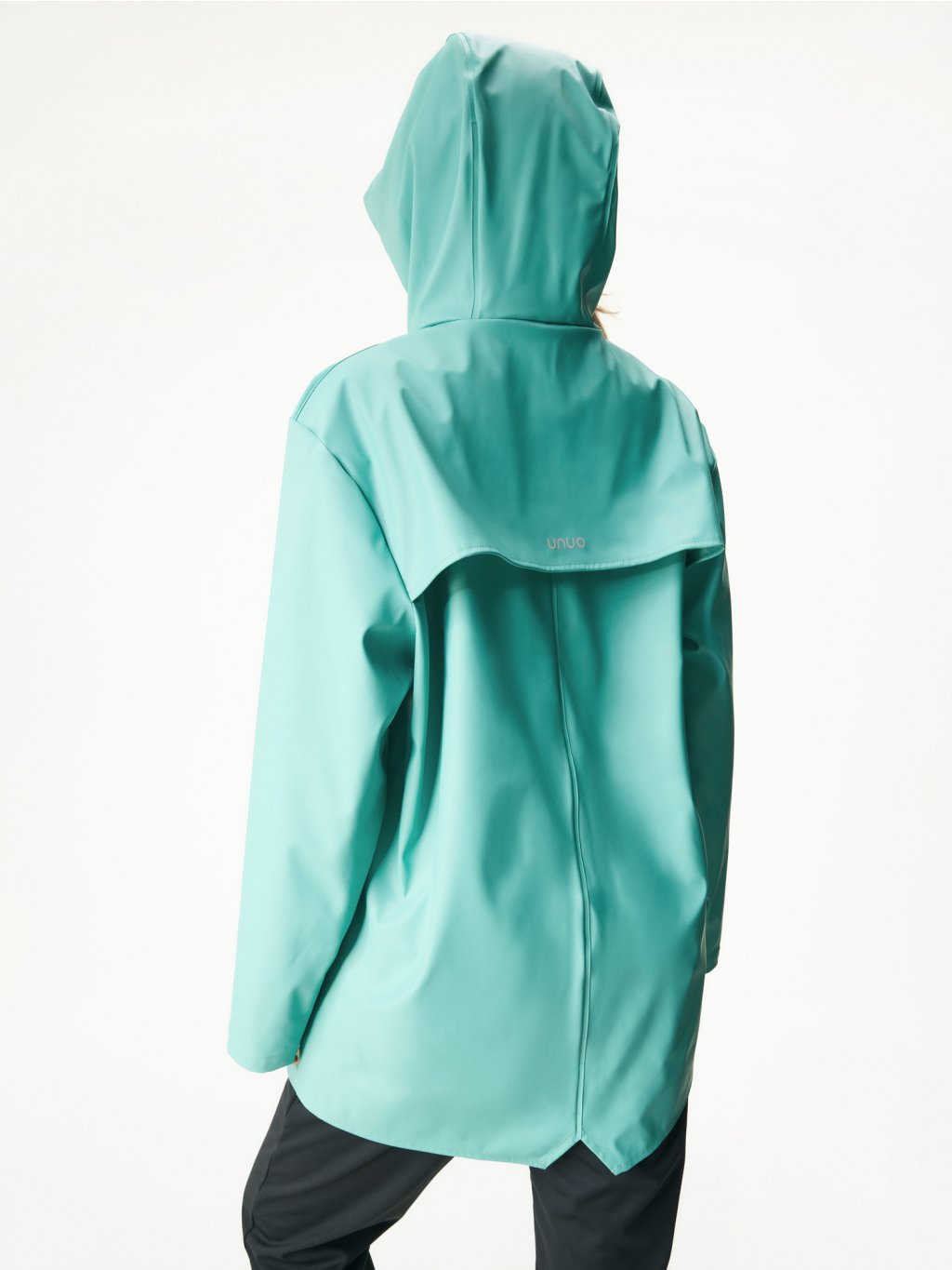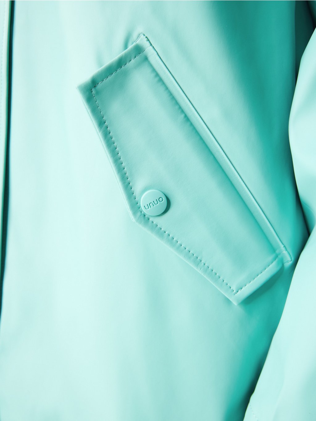 Stylish and functional women's waterproof coat will protect you from rain and wind in any weather. The durable material with sealed seams reliably does not let even a drop of water through, while the practical hood with a visor protects your face from the rain. The sleeves can be easily adjusted with a snap to ensure a better fit and to keep moisture out. The coat fastens with unuo logo snaps that make it easy to put on and give it a unique look. There are also handy pockets where you can safely store your essentials. The perfect choice for women looking for lightweight but reliable protection for rainy days. The waterproof collection is designed in the Czech Republic and sewn by a foreign sewing workshop.